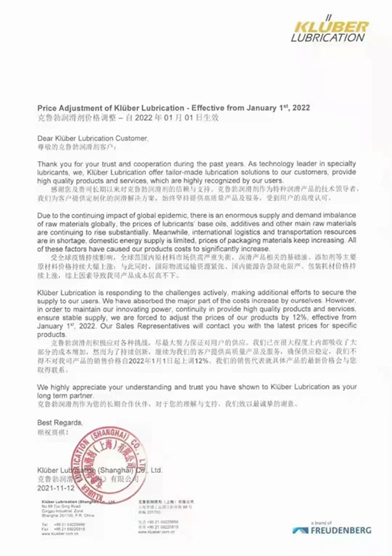 以下是元素君整理的部分潤滑油品牌的價格動態(tài)和調(diào)價函。