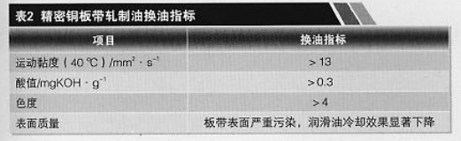 當在用的精密銅板帶軋制油的檢測項目超過更換指標要求時,則應更換軋制油。