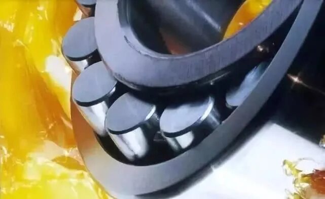 半徑大、速度高的軸承會產(chǎn)生很高的離心力,也可以使得潤滑脂分油,從而導(dǎo)致潤滑脂硬化。